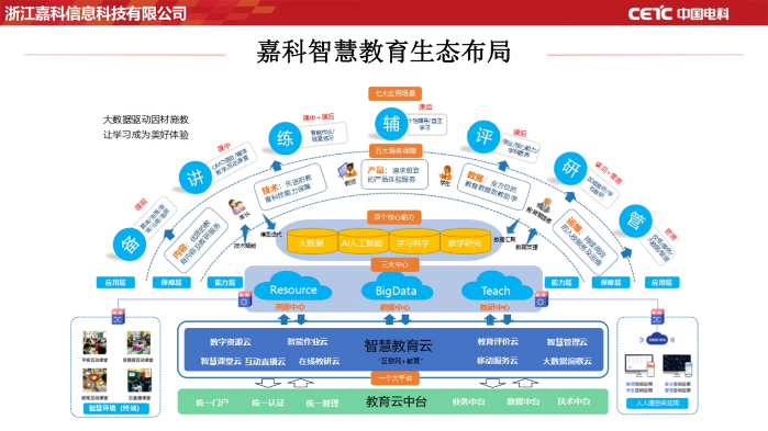 目前,教育信息化浪潮席卷全國。“雙減”政策的出臺更是將家校聯(lián)通的重要性提高到了新的高度。校園信息化的部署顯得尤為重要。中國電科嘉科信息打造的智慧教育方案,通過“一個平臺”“兩個中心”“三大核心能力”“四大服務(wù)體系”,提供“七大應(yīng)用場景”服務(wù)。